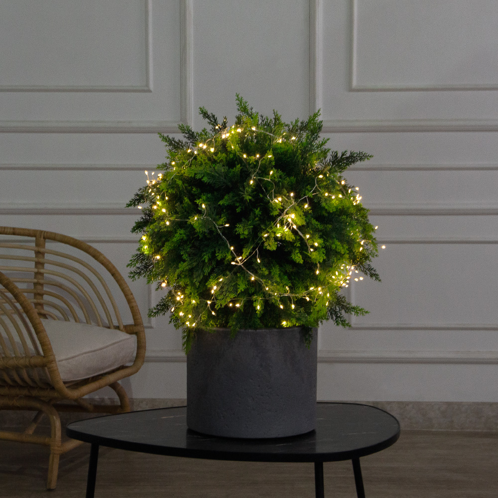 050/Ш/1460/СВ03т(Пр)(F) Туя искусственная шар с гирляндой Роса h65см, d50см