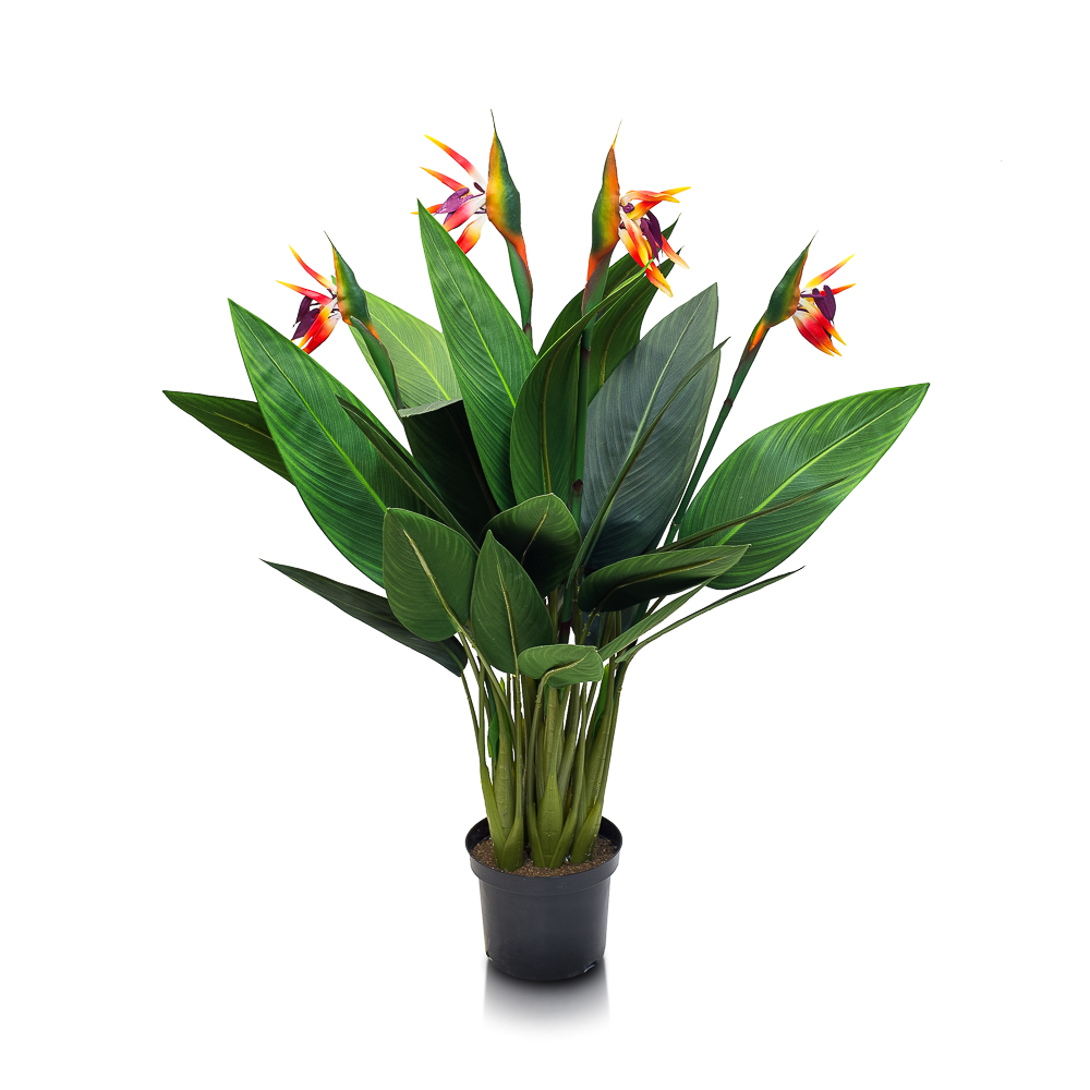 110/2К/357 Стрелиция искусственная куст 4 части с цветами, h110см (силикон/полиуретан)