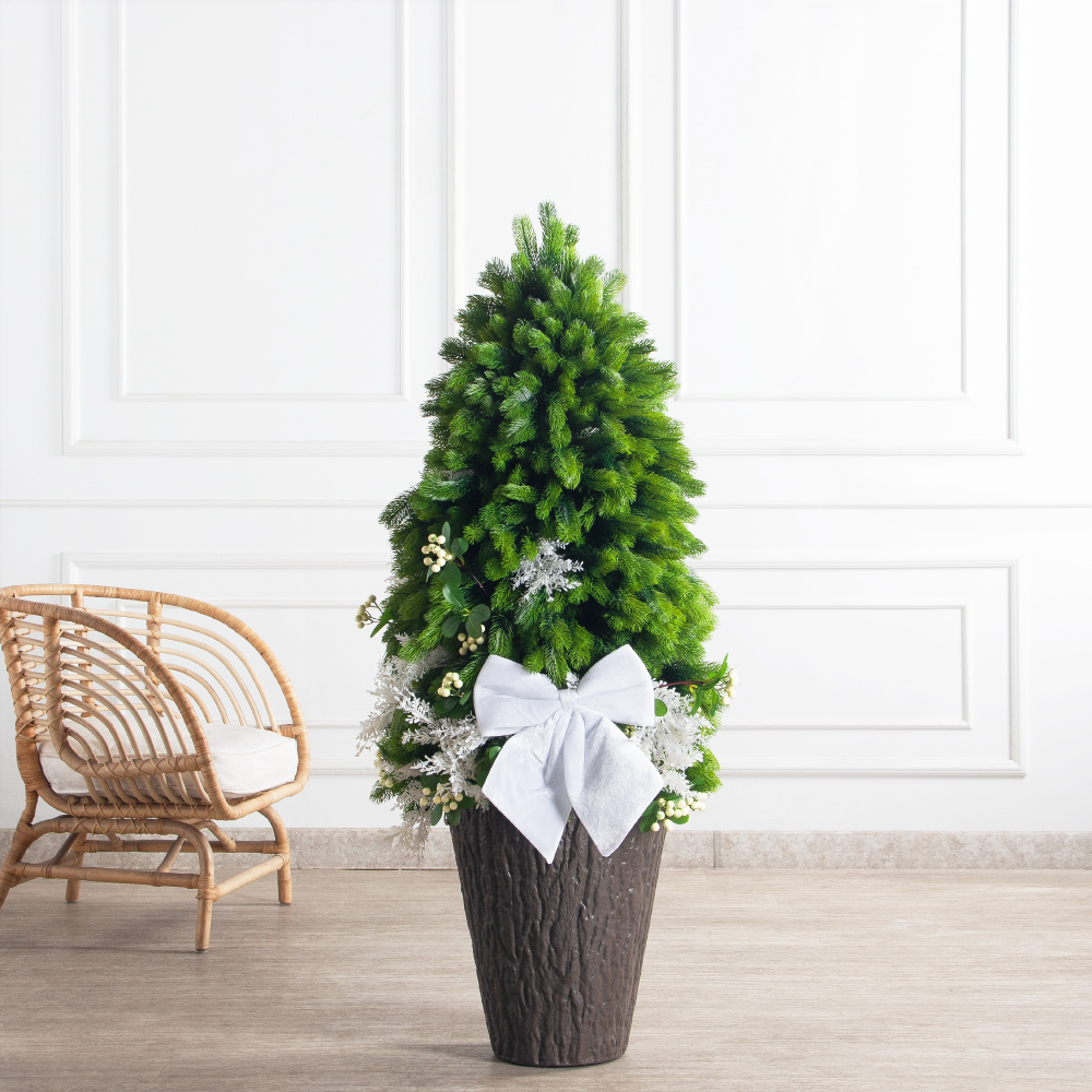 120/289-2(Пр)(Fix)(F) Ель искусственная h120см с белым декором на основании