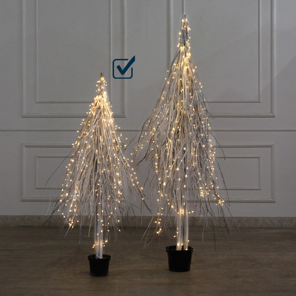 130/РН/СВ03т(Пр)(F) Ель в скандиновском стиле с гирляндой Роса h130см, белая