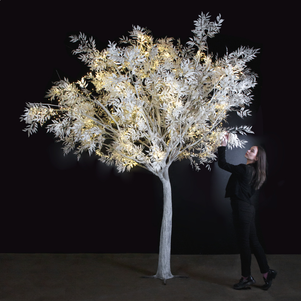 310Гбст/разб/РН/СВ03т/652(F) Ива интерьерная зим. с гирляндой"Роса"желтого цвета h310см d290,белая