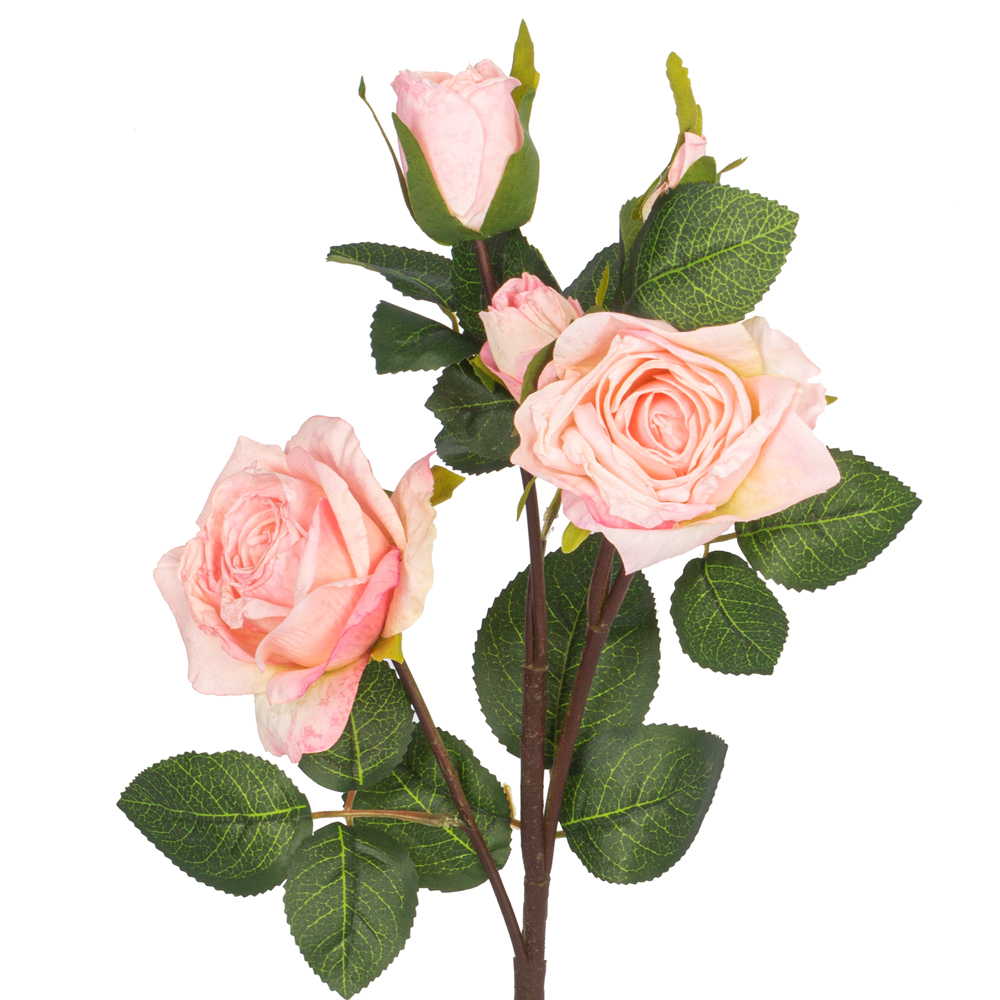 7141/9191-11/1 Роза искусственная Ретро, 3 головы, 2 бутона, h66см, розовая