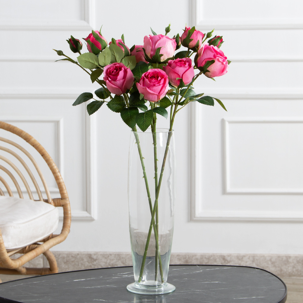 7141А/0108-0360/1(F) Роза искусственная h65см 2головы 2бутона,розовая