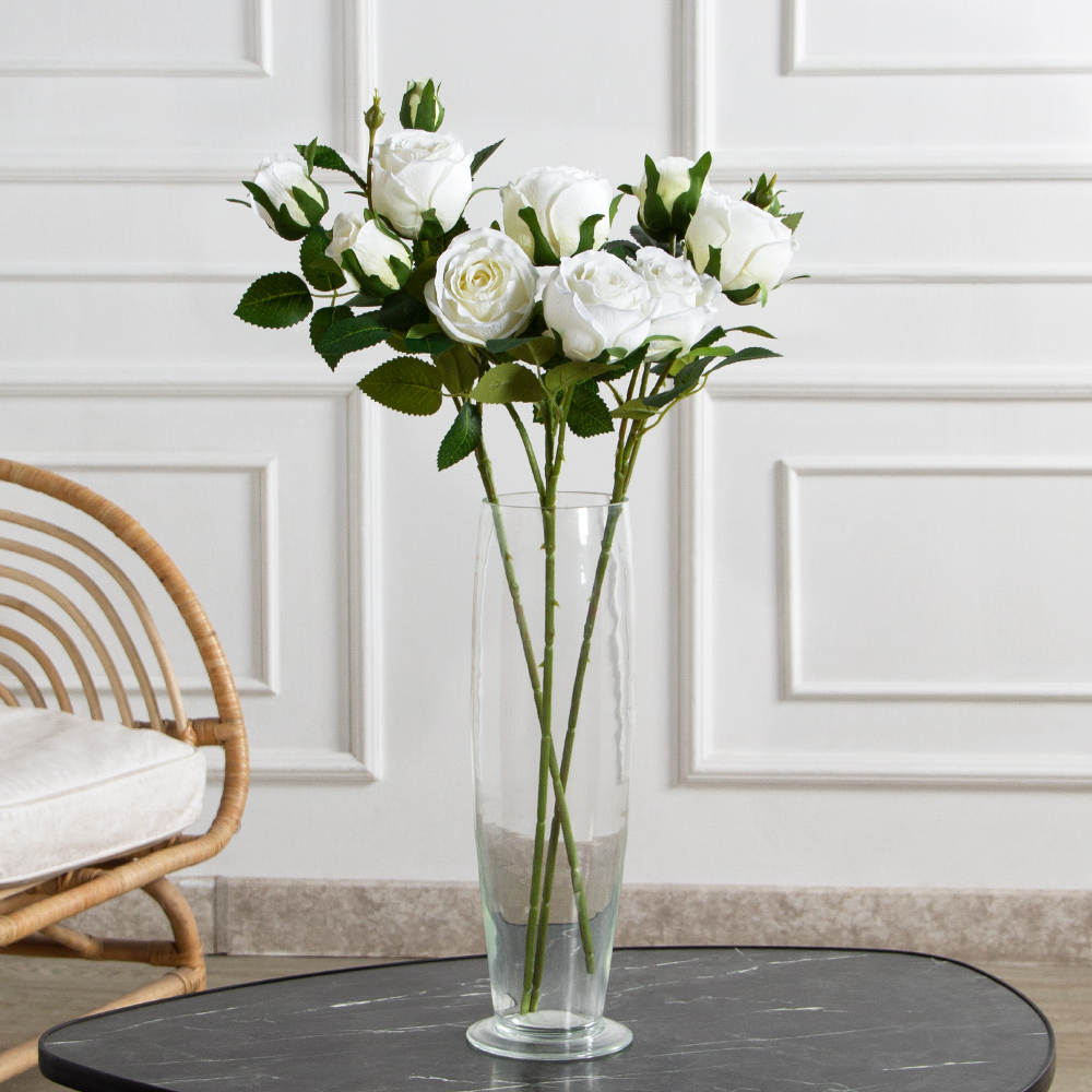 7141А/0108-0360/23(F) Роза искусственная h65см 2головы 2бутона,белая