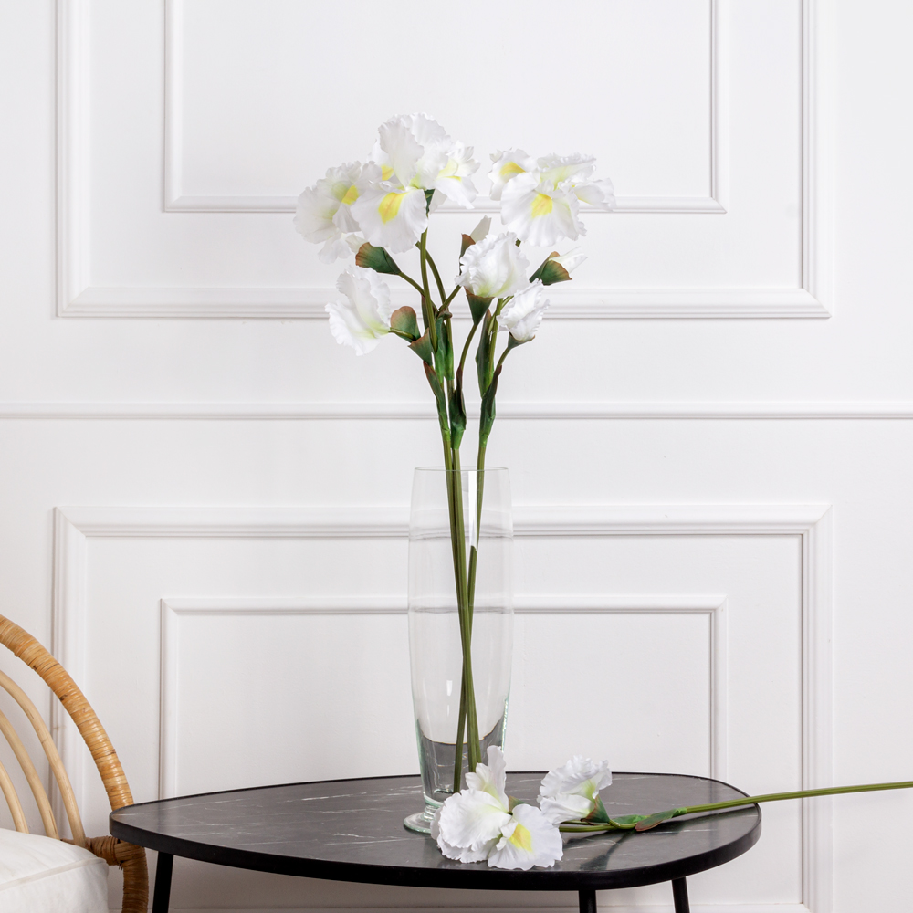 7141А/9120-01/23Р Ирис искусственный 1 голова d17см, 2 бутона, h80см, белый