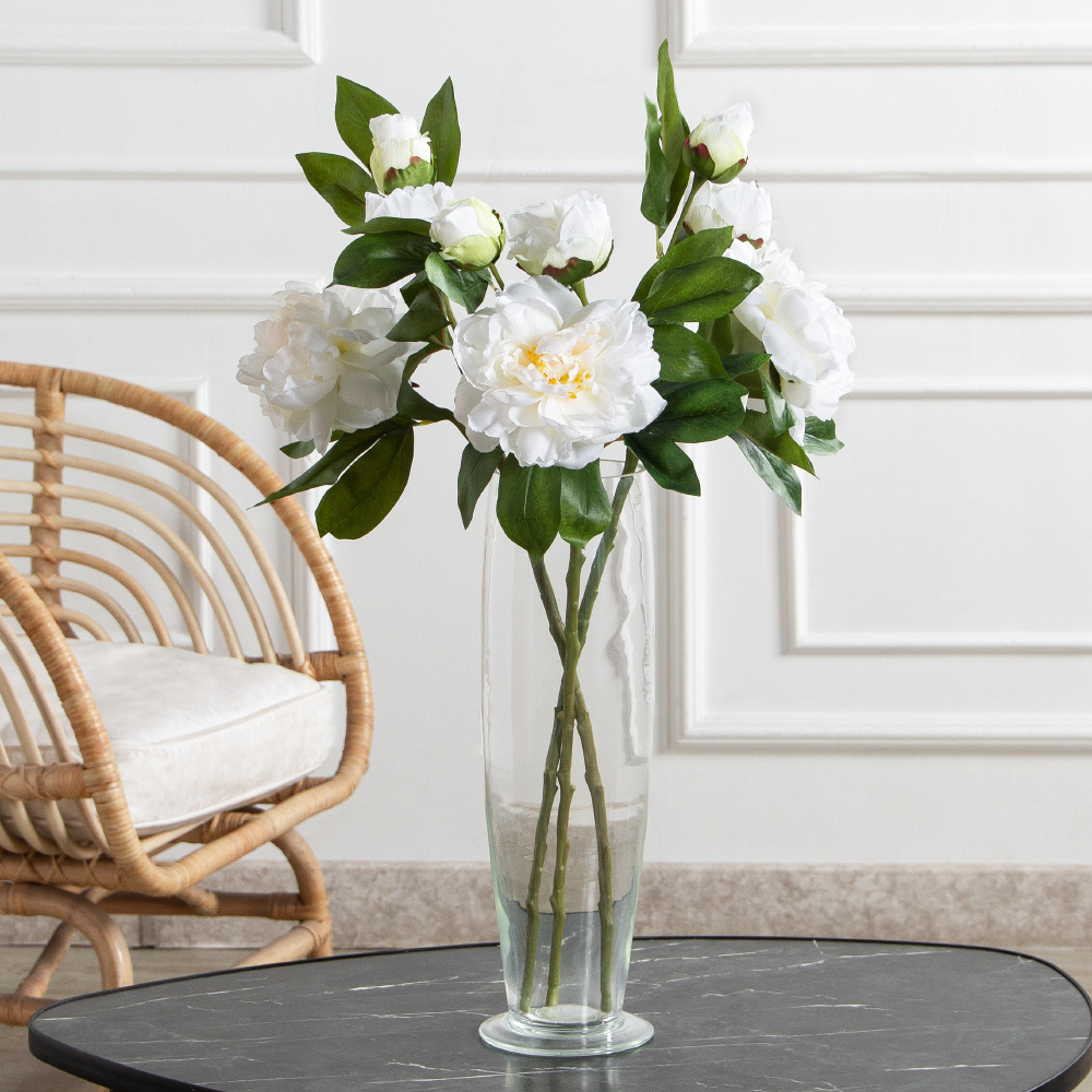 7141А/9122-0349/23(F) Пион искусственный h67см 1голова 2бутона,белый