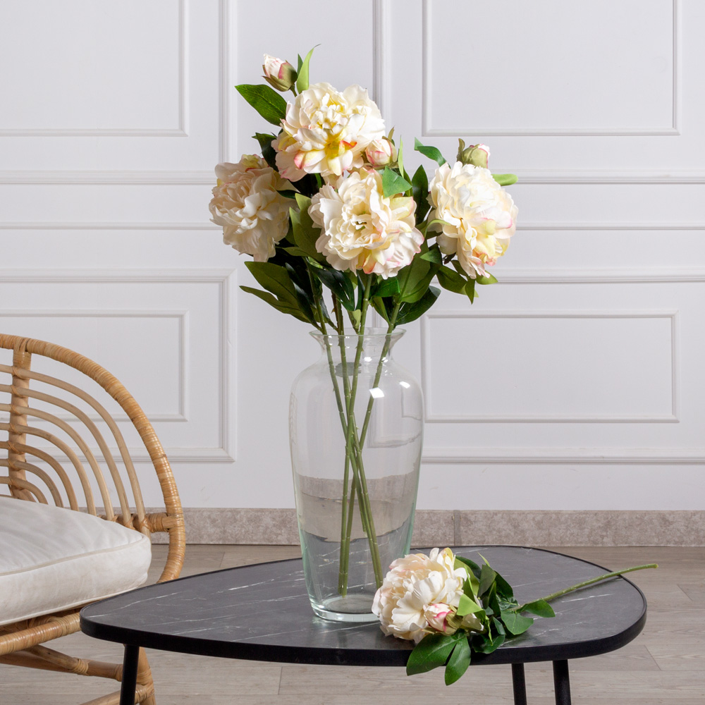 7141А/9149-10/4(F) Пион искусственный 1 голова d12см, 1 бутон, h63см, кремовый