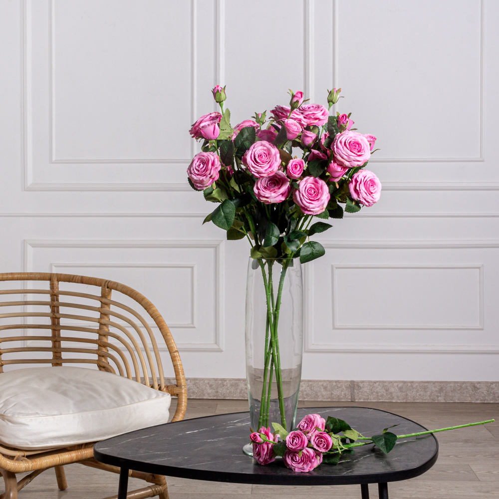 7141А/9149-11/8(F) Роза искусственная h75см, 3головы, 4бутона, сиреневая, шёлк