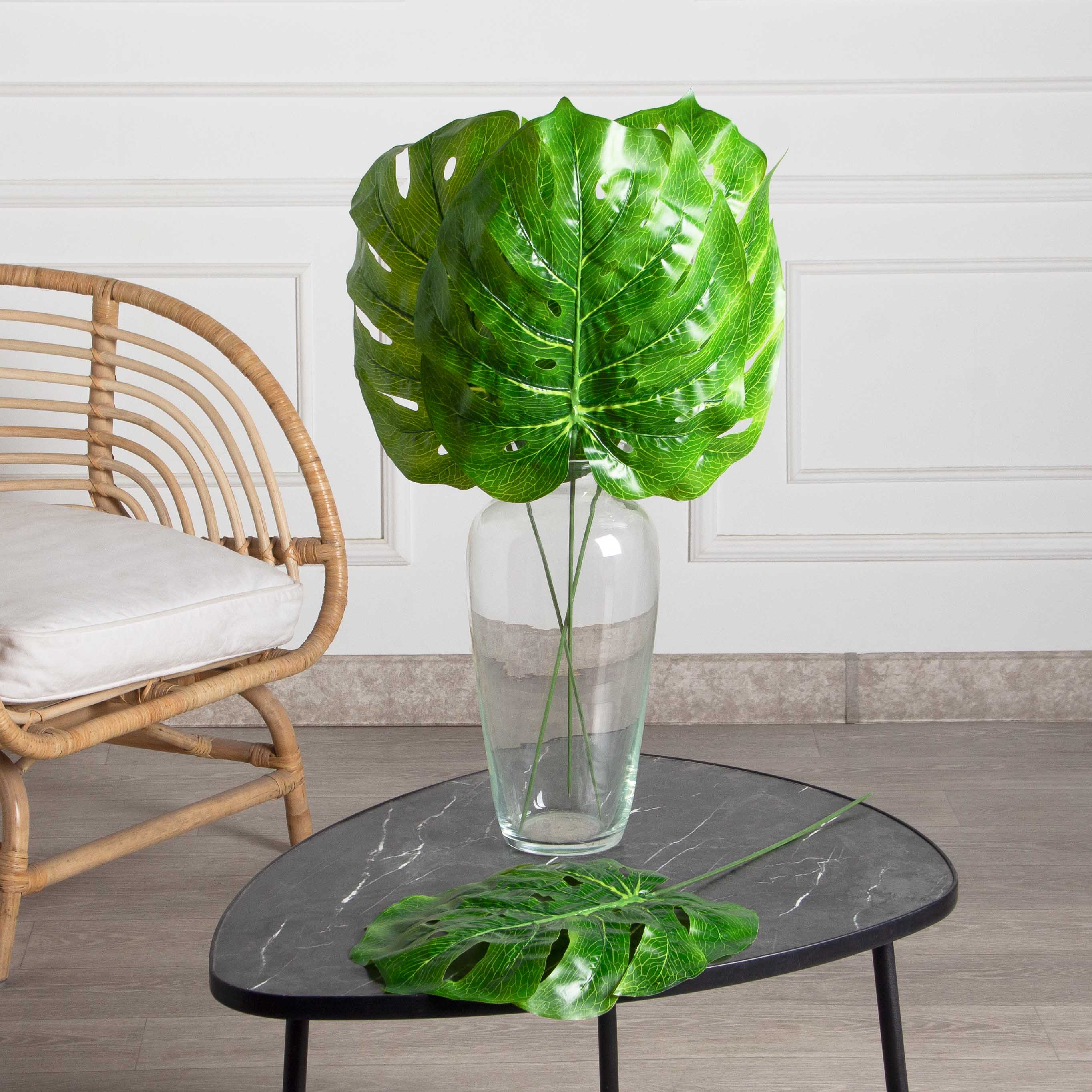7143/0027-6/3 Лист Монстеры искусственный, латекс большой h 68 (36 см лист+32см нога) 31 см ширина