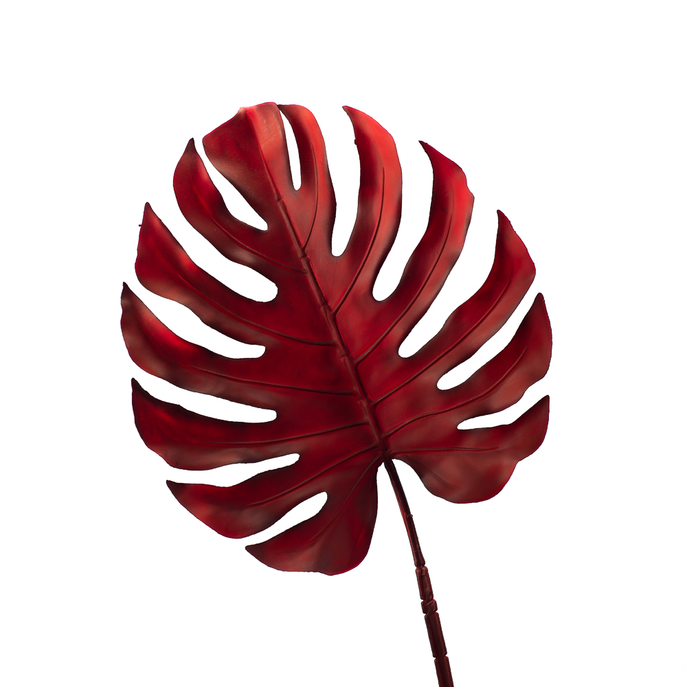 7143/0030-6/11 Лист Монстеры искусственный большой h90 см (40+50), бордовый