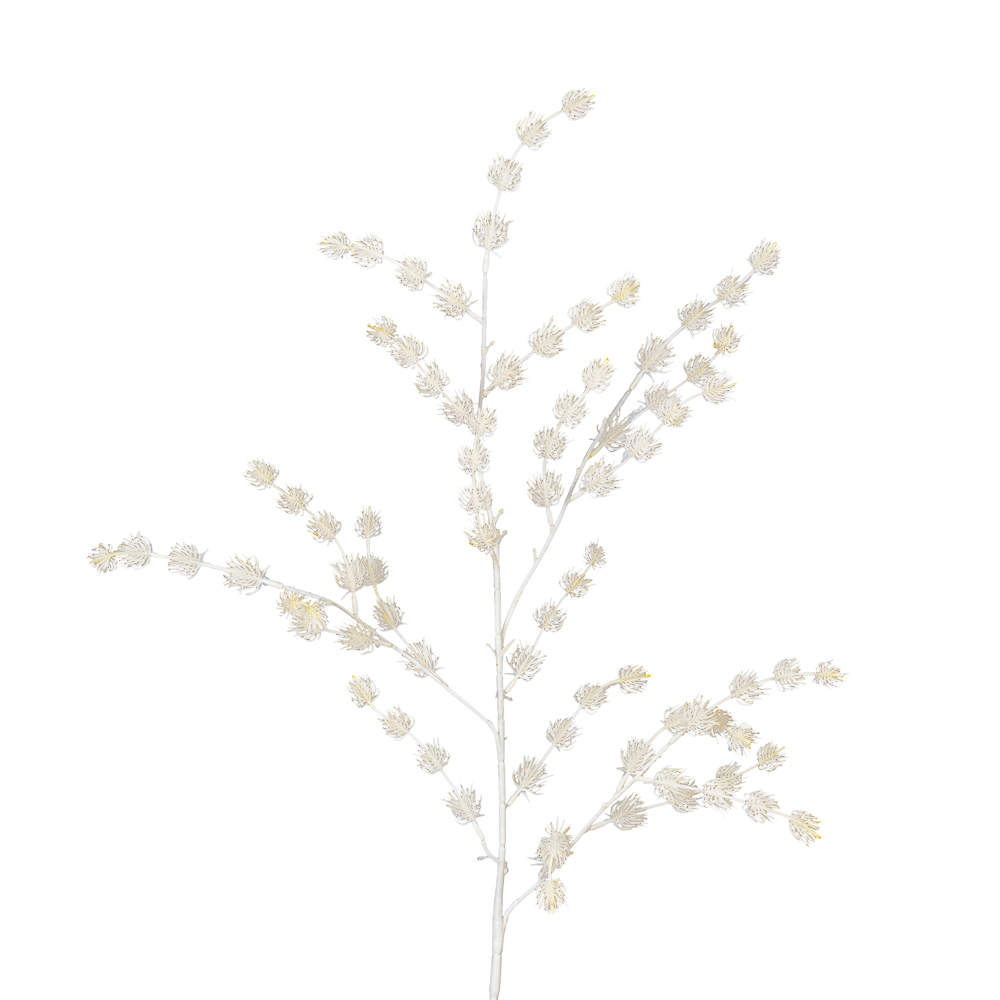 7143/0041-7/4-1 Ветка Ёжики искусственная h100 см, бело-кремовая
