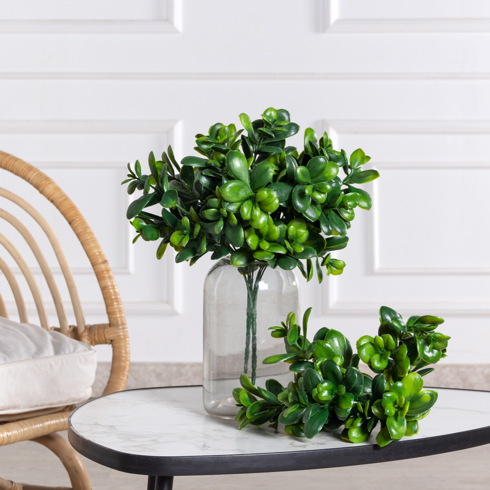 7143/0381-11/9Т(F) Крассула искусственная (толстянка) куст 5 частей h33см, темно-зеленый