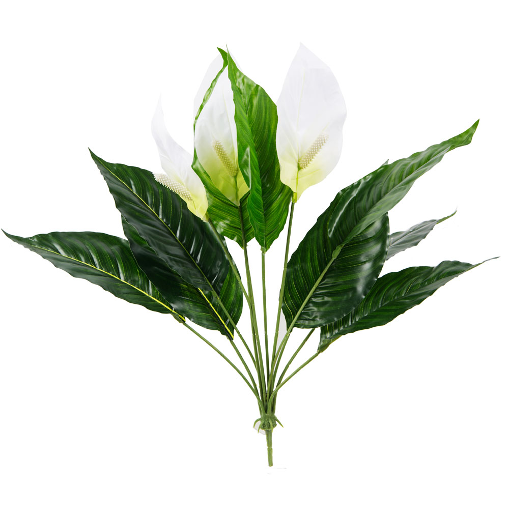 7143/0760-39/1 Спатифиллум искусственный куст цветущий 12 частей (9листьев+3 цветка) h45см (51+9)