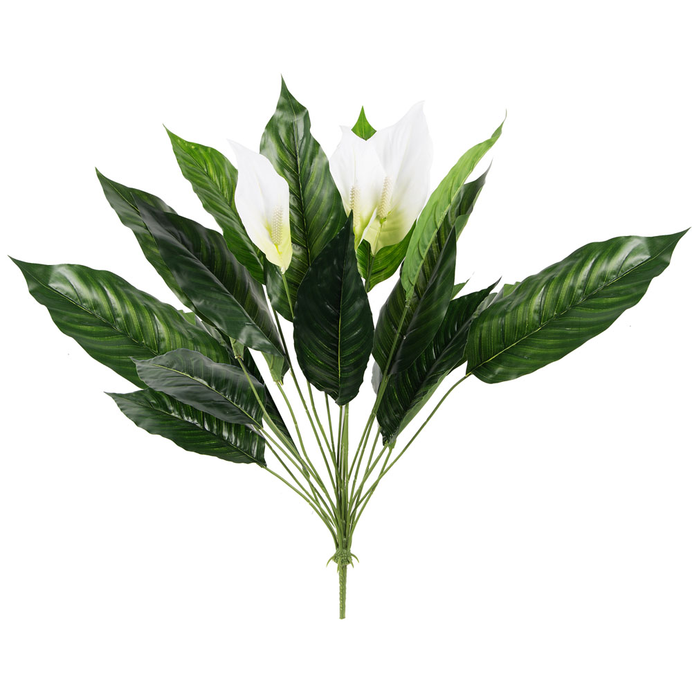 7143/0760-39/2 Спатифиллум искусственный куст цветущий 18 частей (15листьев+3 цветка) h76см (68+8)