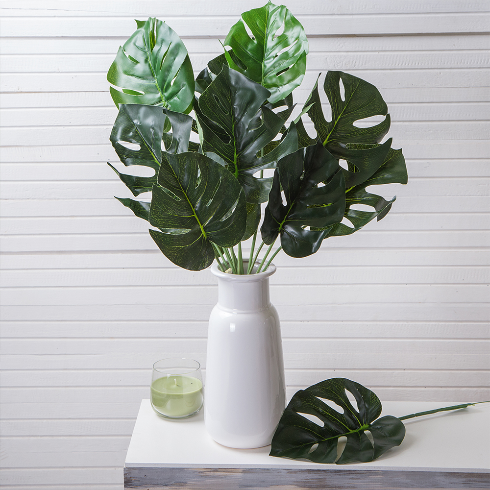 7143/0760-41/2 Монстера искусственная куст большой, 18 веток, h64см (53+11)