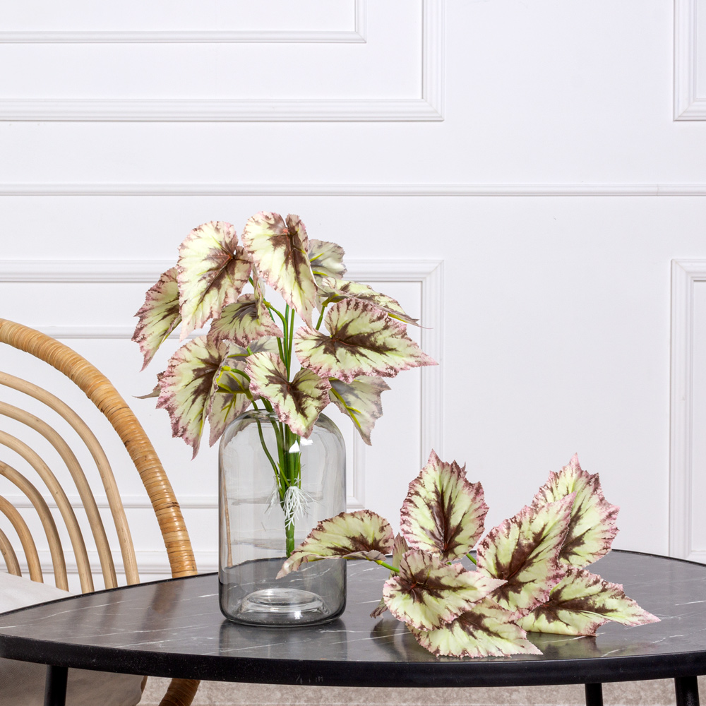 7143/0901-01/2(F) Бегония искусственная 12 листов куст h37см (32+5) бело-бордов.