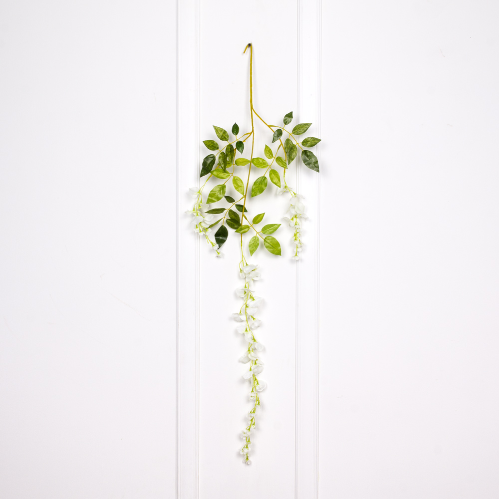 7143/9113-0/23 Вистерия искусственная ветка 3 части h120см (h53 свес 57) белая