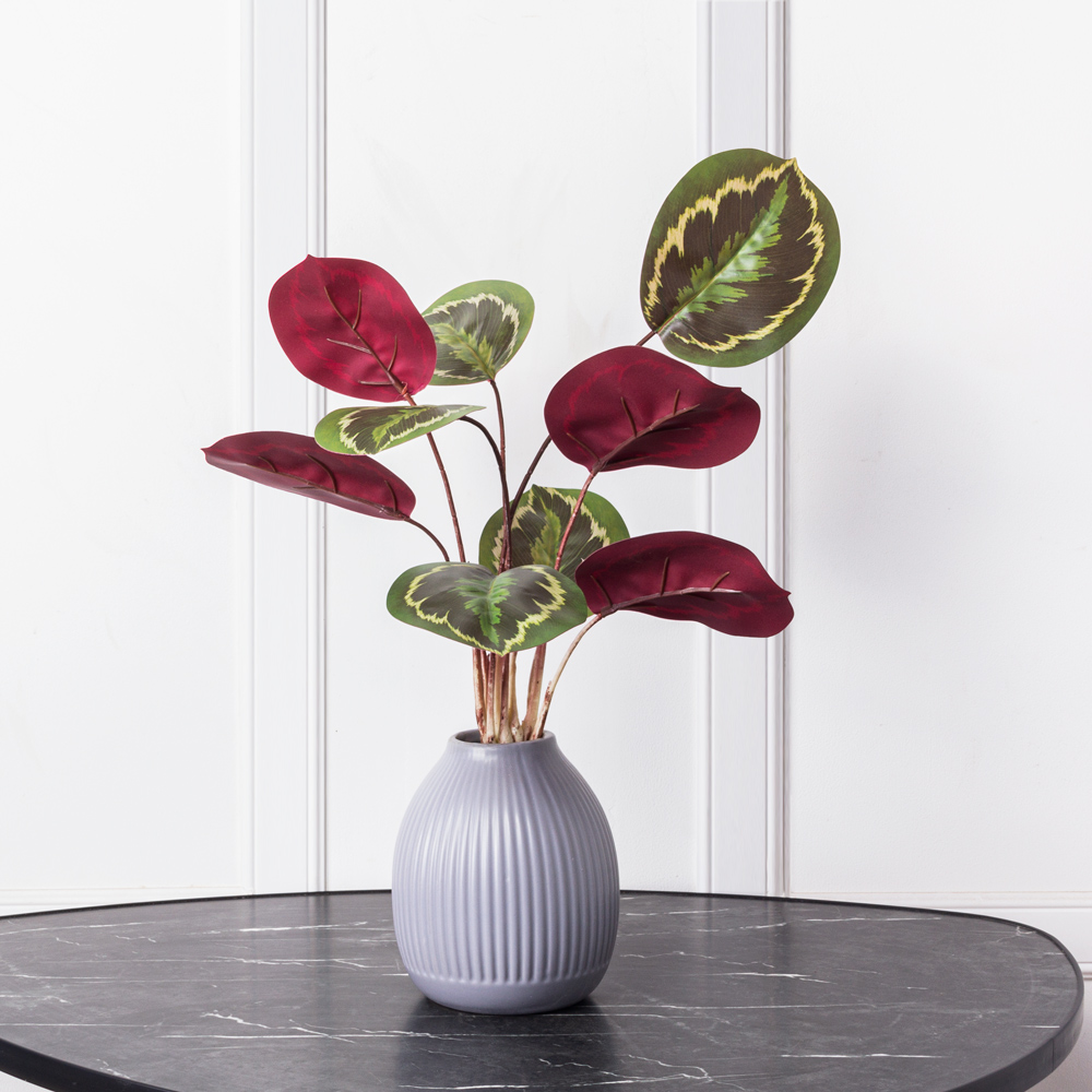 7143/А2790-266(Sale) Калатея Медальон искусственная куст 9листов h55см (43+12корень) зелено-белая