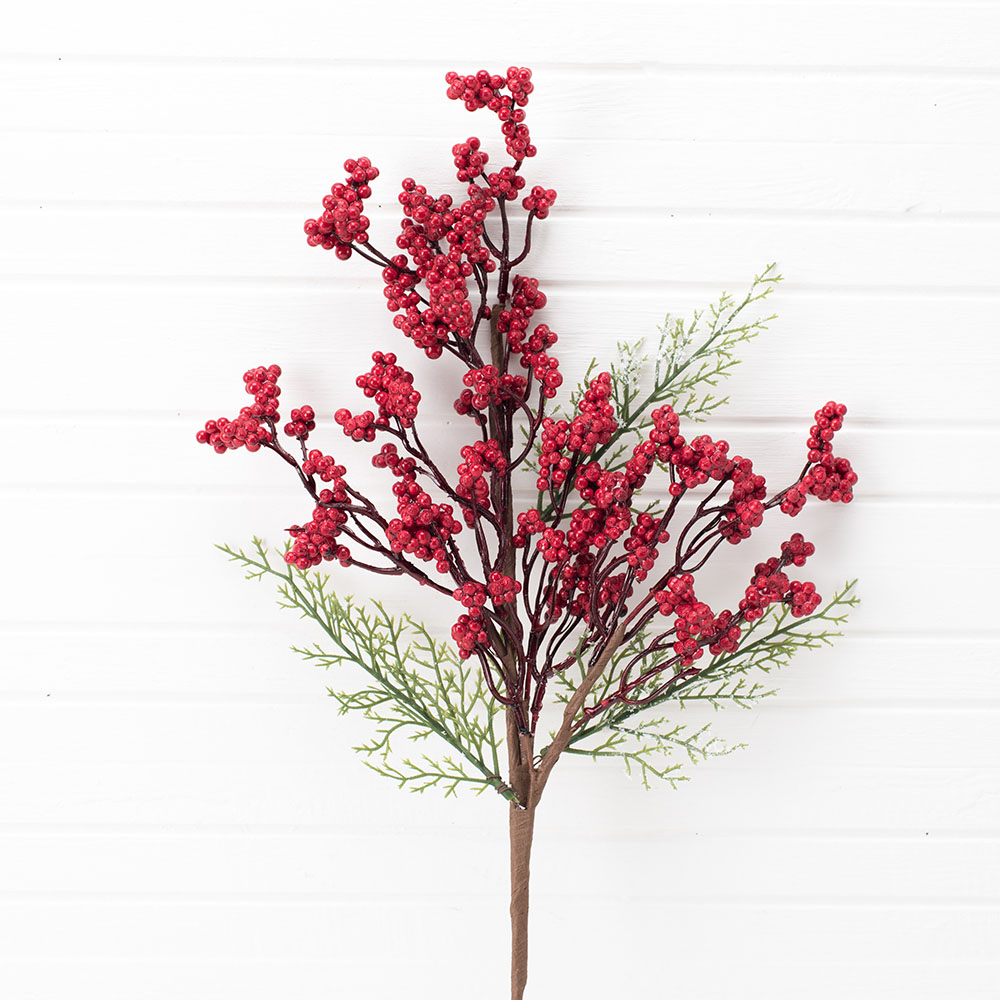 736/9127-15(Sale) Ветка искусственная с мелкими красными ягодами h60см