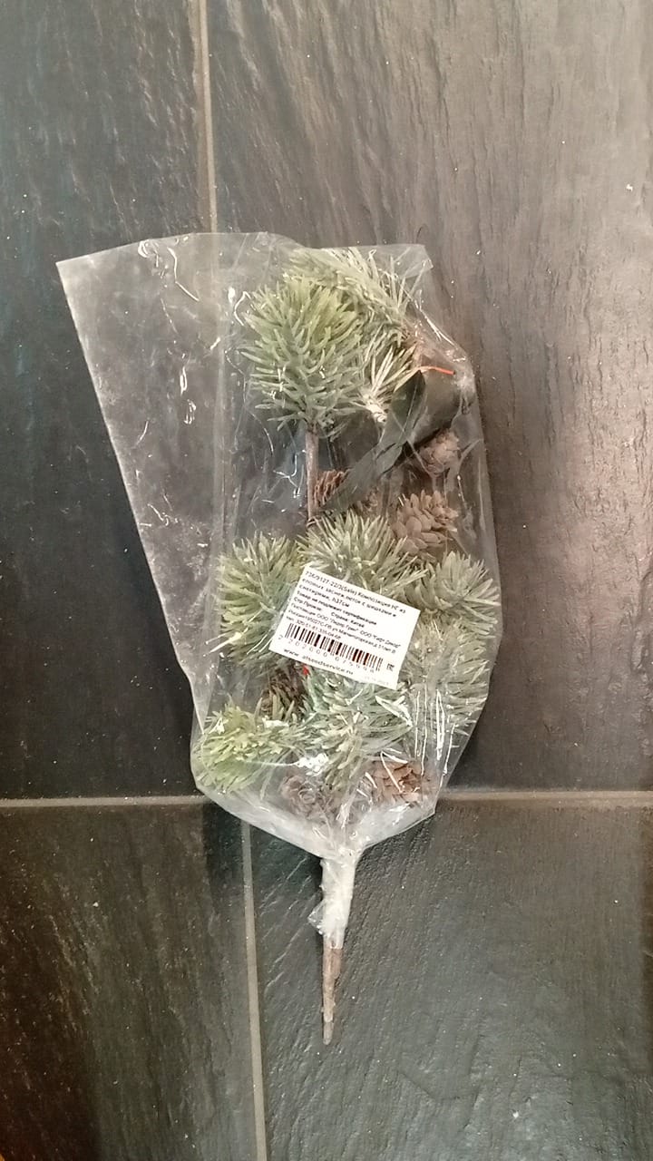 736/9127-22/3 Композиция НГ из еловых заснеж.веток с шишками и снегирями, h37см