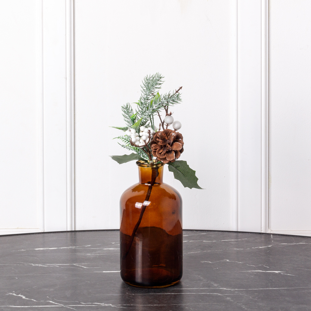 736/9271-06Р Ветка новогодняя еловая с шишкой и белыми ягодами h24см
