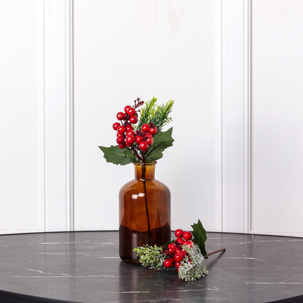 736/9271-07Р Ветка новогодняя еловая с красными ягодами h24см