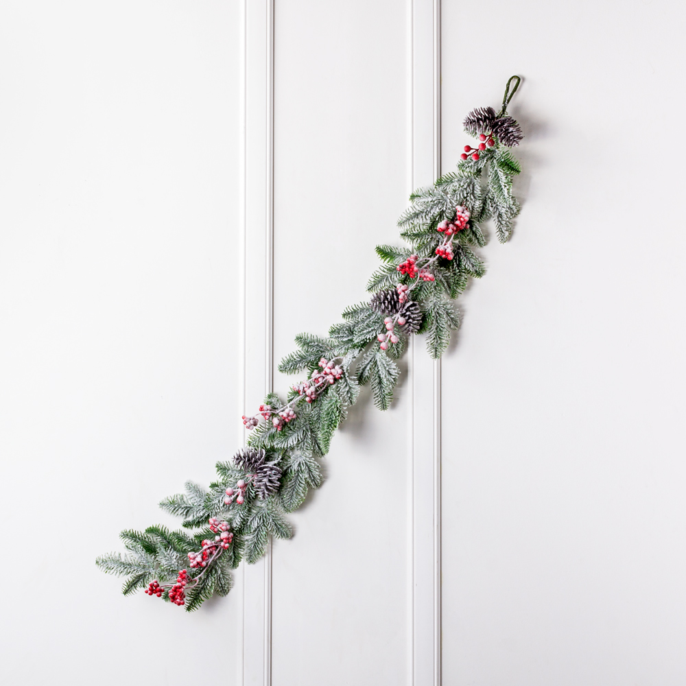 736/9271-11 Гирлянда НГ заснеженная с шишками и красными ягодами h130см