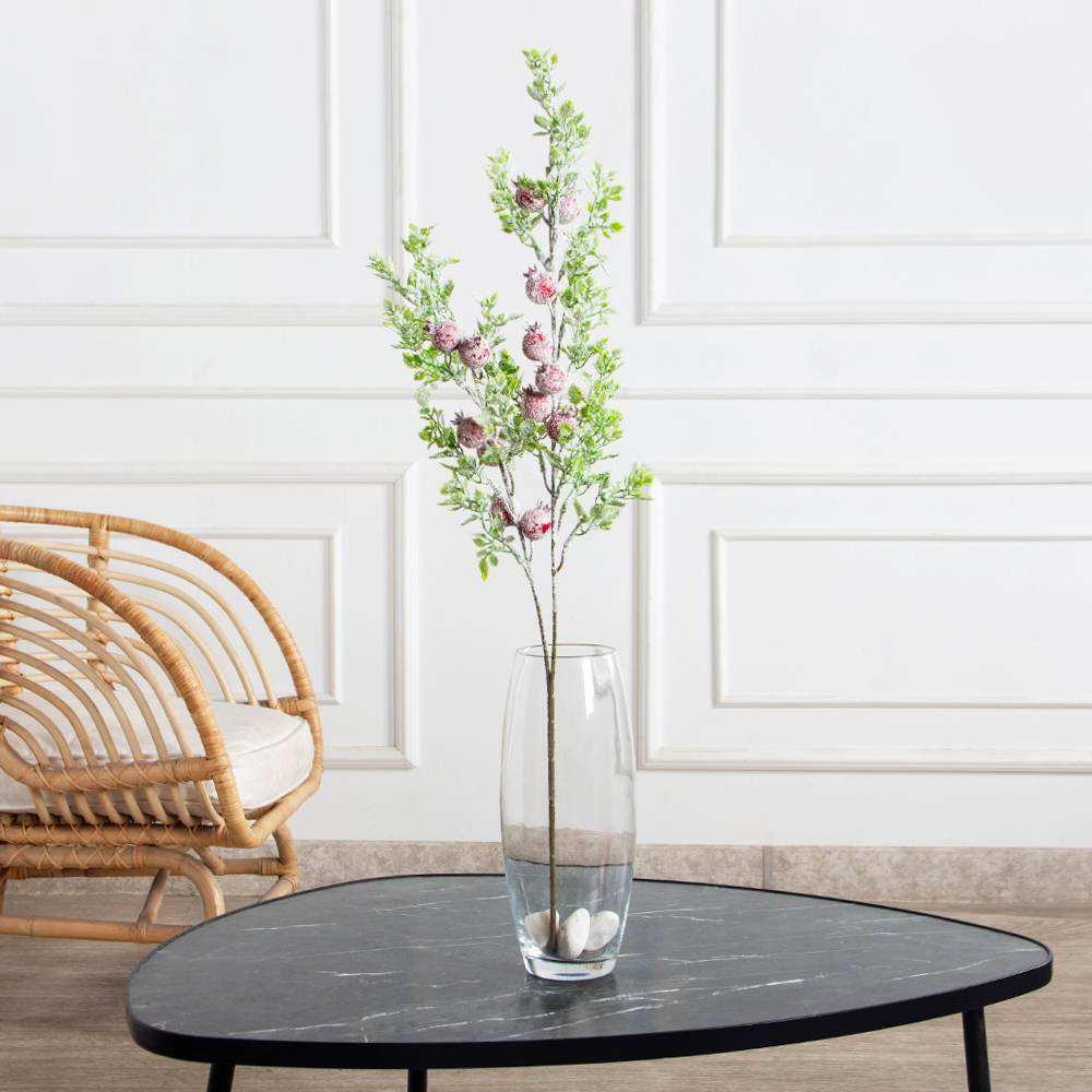 736А/0424-0138(F) Ветка заснеженная НГ с гранатами и блёстками h70см(47+23см) 2ветки,11 гранат