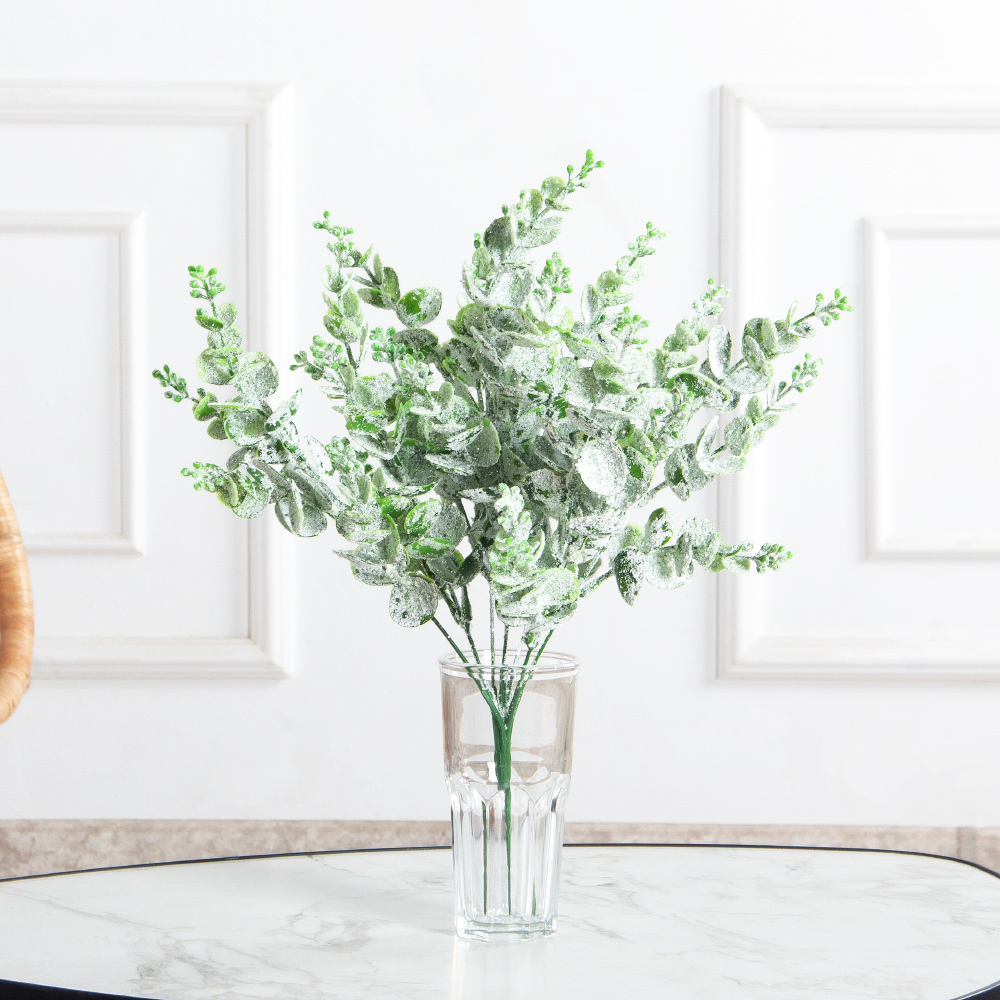 736А/0424-12(F) Самшит искусств. крупный Эвкалипт НГ заснеж. с блёстками 5частей, h38см(30+8)