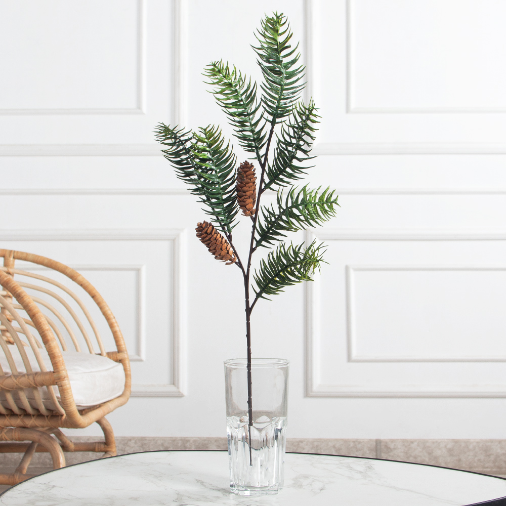 736А/9271-0055(F) Ветка еловая с шишками h48см(40+18см) 7частей,2шишки