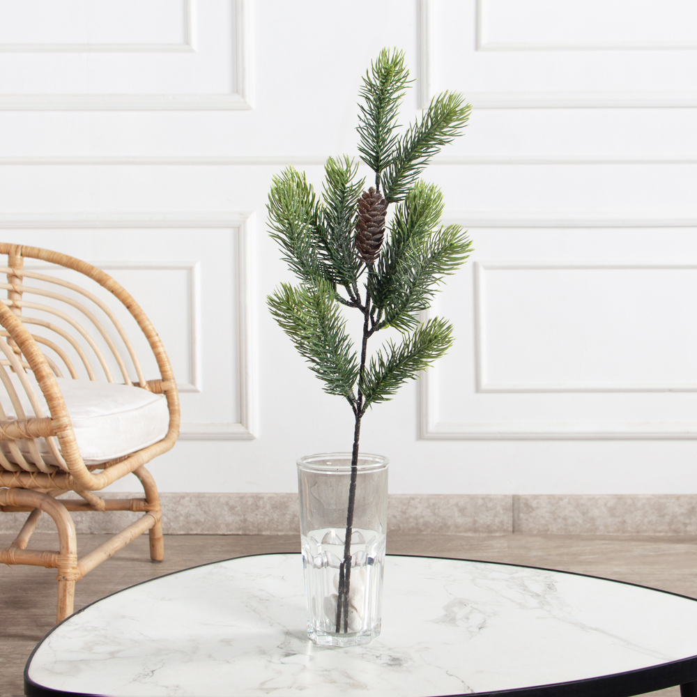 736А/9271-0163(F) Ветка еловая НГ с шишкой и блёстками h47см(30+17см) 6частей и 1шишка