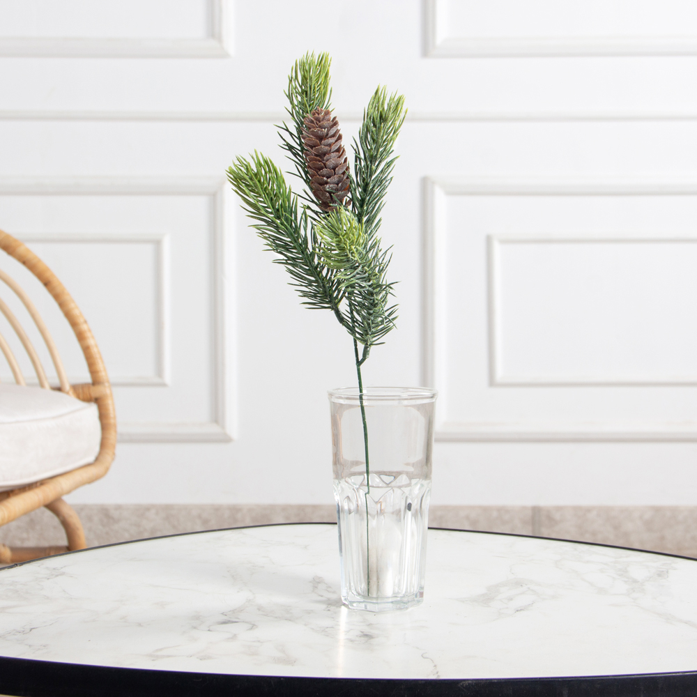 736А/9271-0164(F) Ветка еловая НГ с шишкой и блёстками h32см(18+14см) 4части и 1шишка