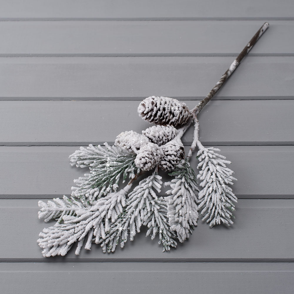 743/20290KG(Sale) Ветка еловая в снегу с шишкой 50см