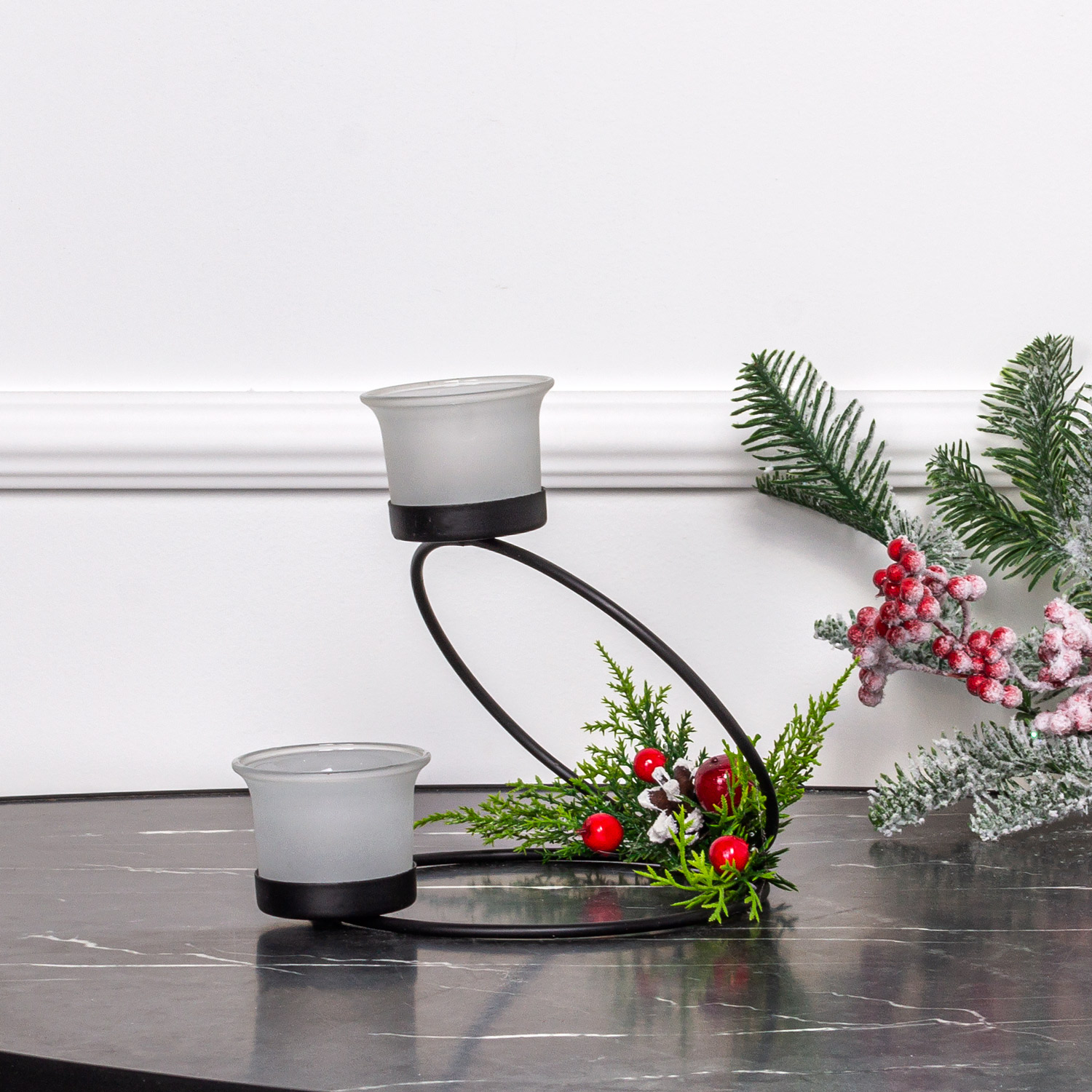 808/025-2/2 Подсвечник металл+стекло* 2св (20*20*h19см), черный