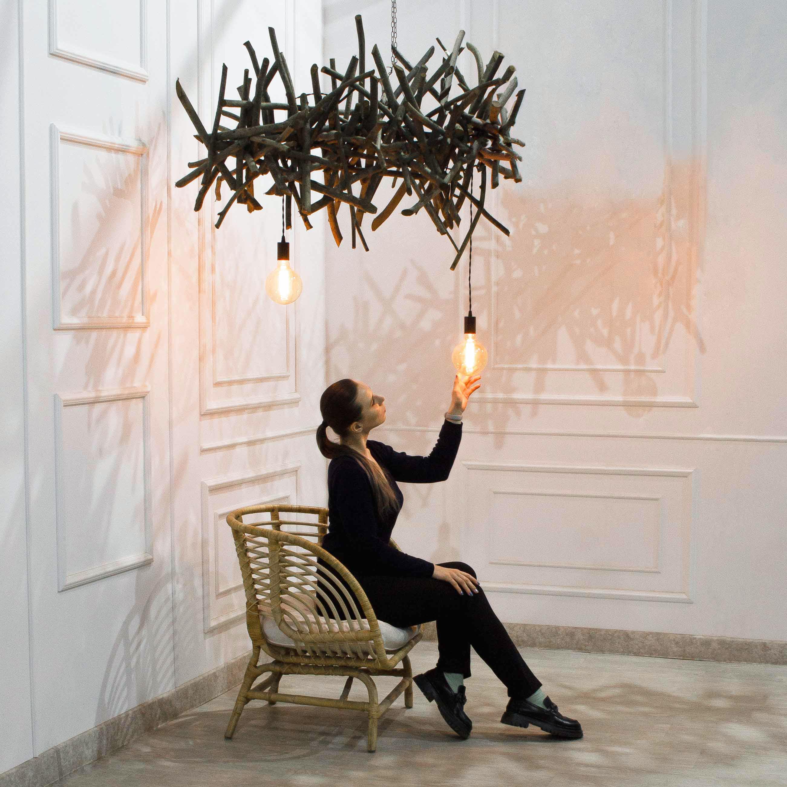 812/ПД/РН/СВ01/02(F) Подвес с натуральными корягами с подсветкой L100см h75см