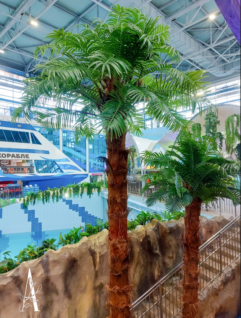 Роскошные тропические пальмы в аквапарке создают атмосферу настоящего тропического рая. Эти искусственные деревья идеально имитируют природу, сохраняя природную красоту и создавая иллюзию путешествия на острова прямо посреди шумного города. Благодаря высококлассному исполнению и материалам премиум-класса наши пальмы служат долго, оставаясь неизменно привлекательными и радуя глаз гостей долгие годы.