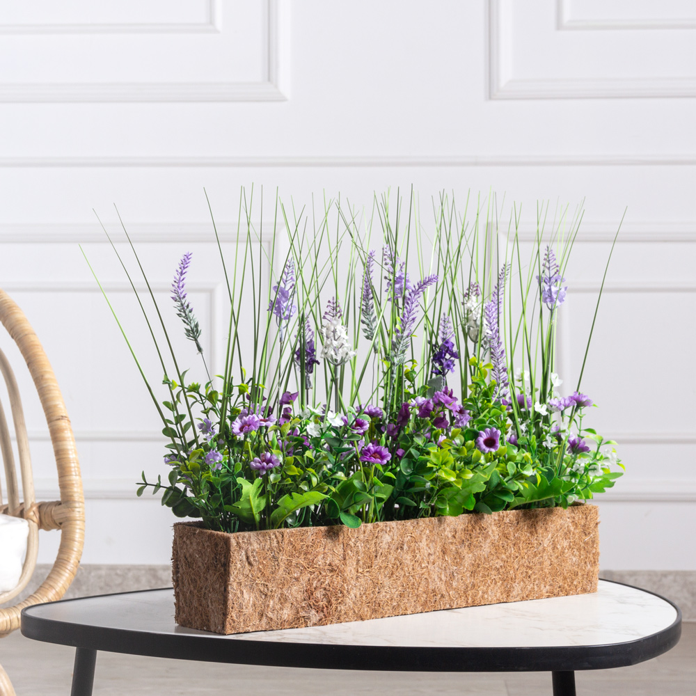 Б007-2/35/1(з)(F) Лаванда искусственная в кокосовом боксе 45х8х8см