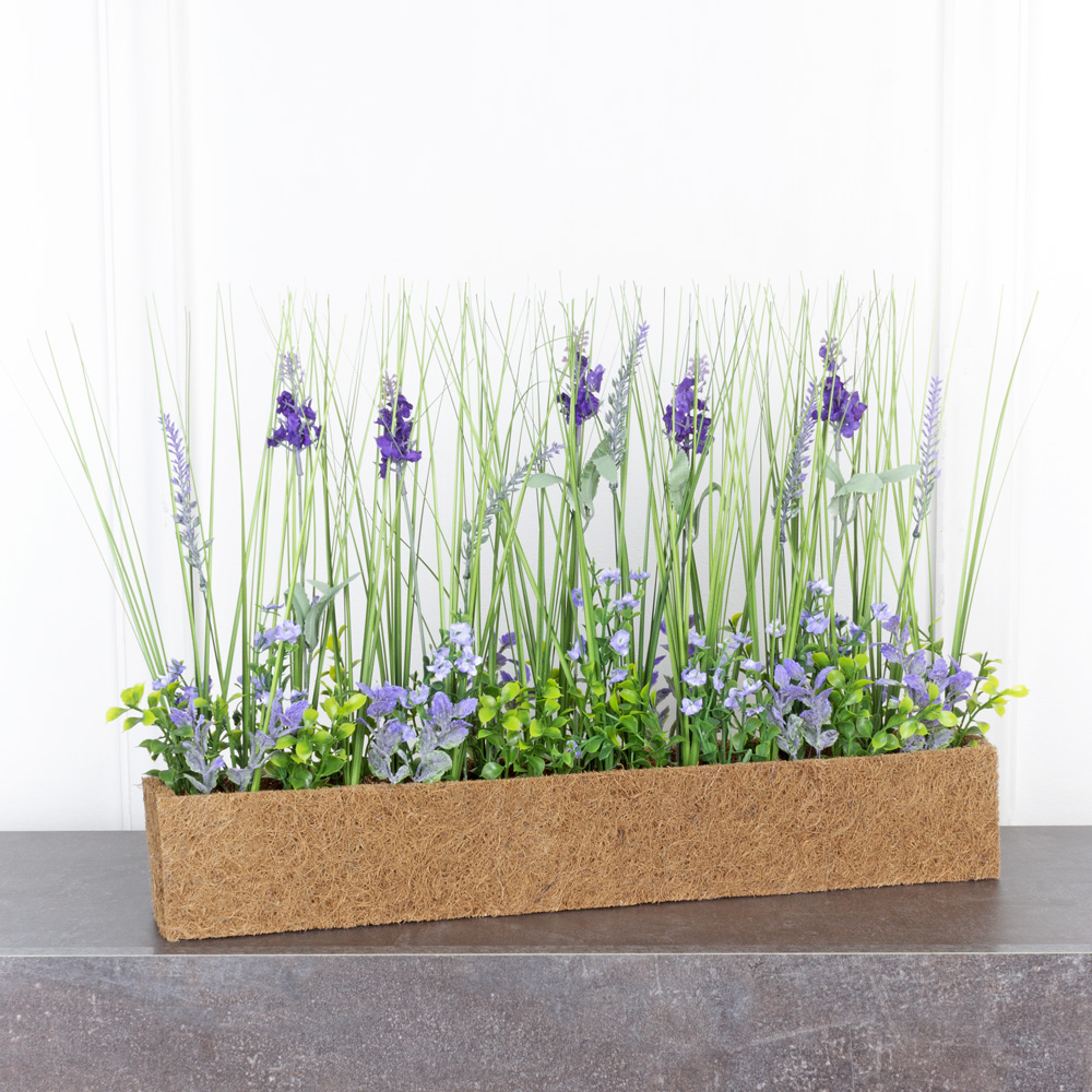 Б007 Лаванда искусственная h29см в кокосовом боксе 50х7х8см (бордюр), сиренево-фиолет