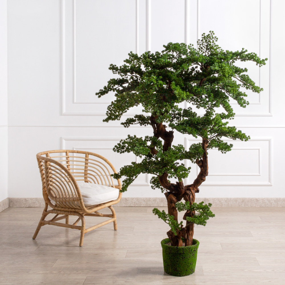 БС150/2К/ОС/427(Пр)(F) Бонсай искусственный Сосна h150см в кашпо со мхом d26см