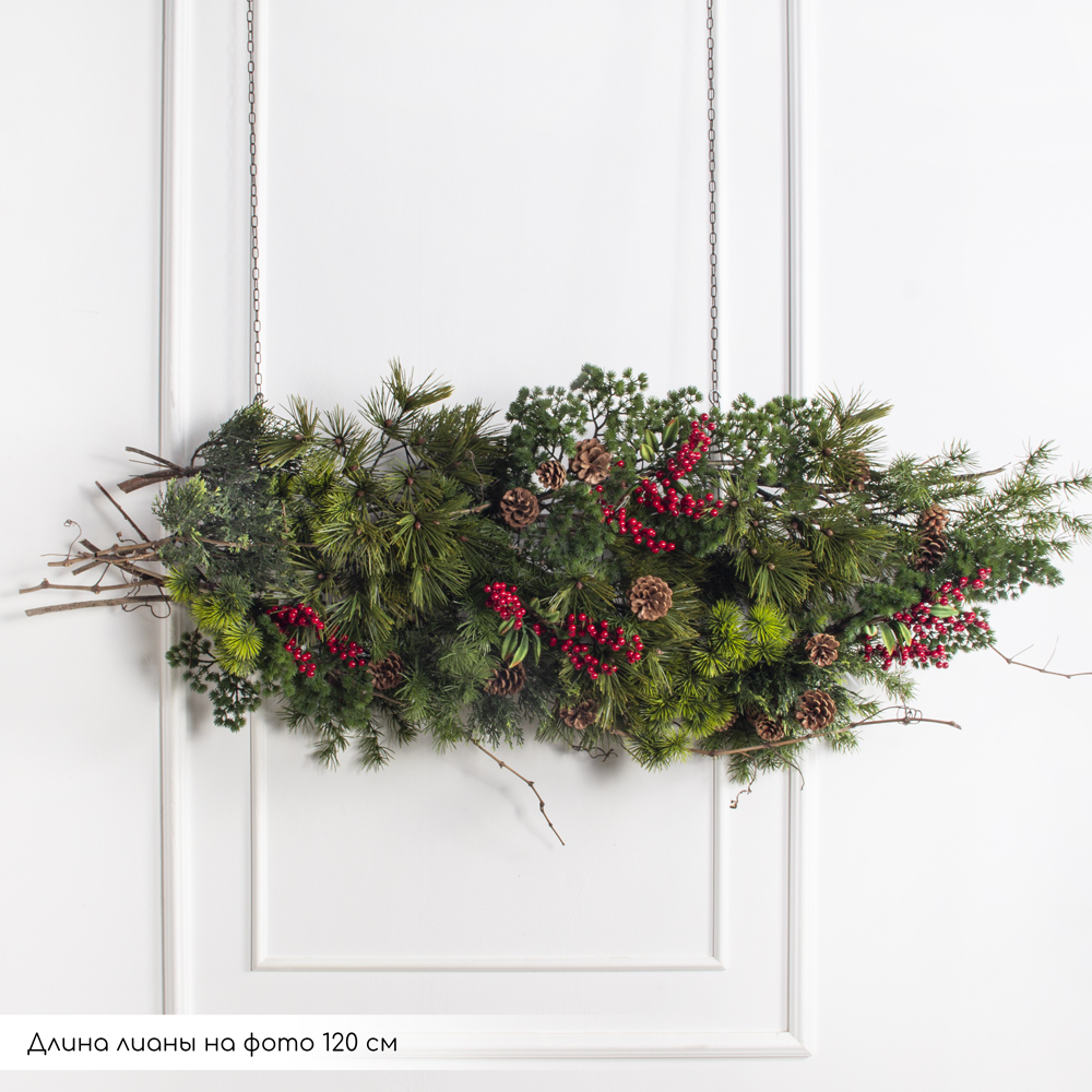 ДЛ147(Пр)(F) Декор входной группы хвойный с шишками и ягодами L100см на прутьях, пристенный