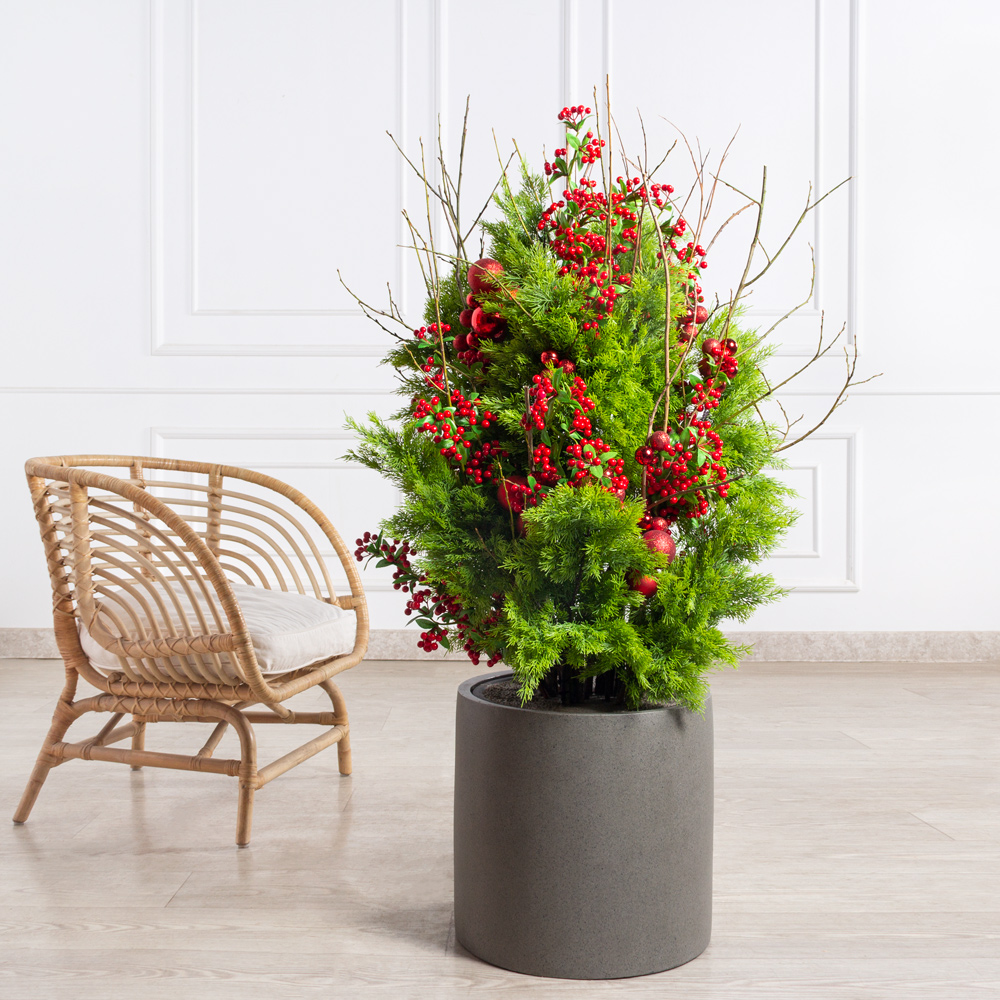 ДЛ148-1(з)(Пр)(F) Декор входной группы хвойный h120см на прутьях, пристенный в кашпо