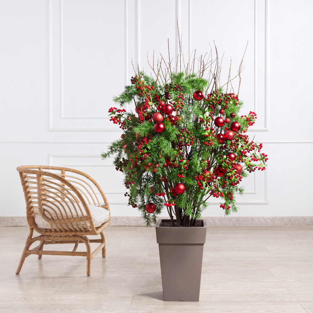 ДЛ148-2(Пр)(F) Декор входной группы хвойный h100см на прутьях, пристенный, красный
