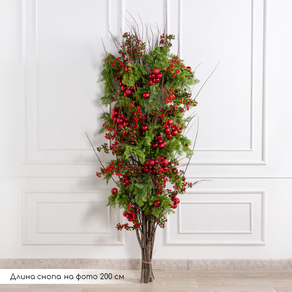 ДЛ148(Пр)(F) Декор входной группы хвойный h100см на прутьях, пристенный, красный