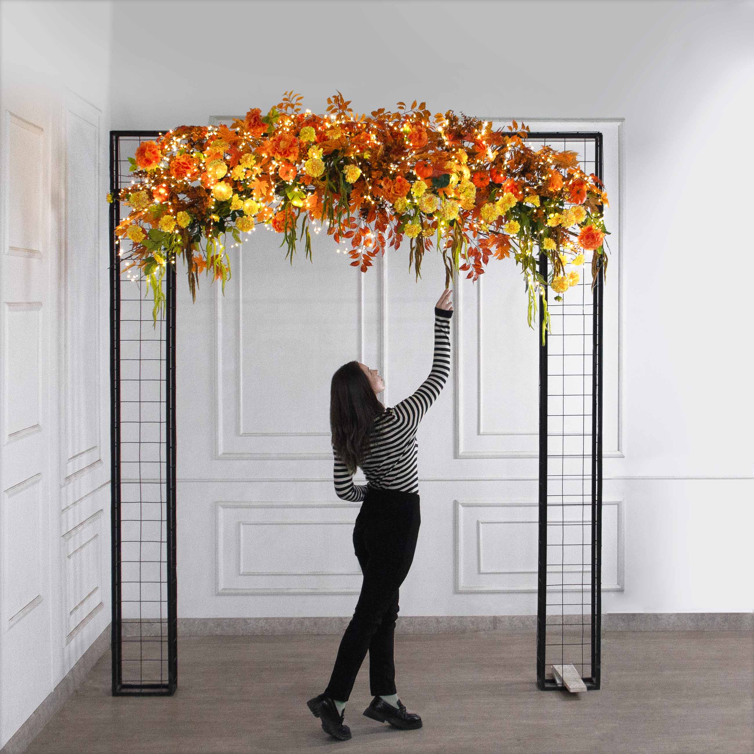 ДЛ174/СВ03(Пр)(Fix)(F) Декор арочного типа L230см на прутьях,пристен. с гирлянд. "Роса",оранж-желт