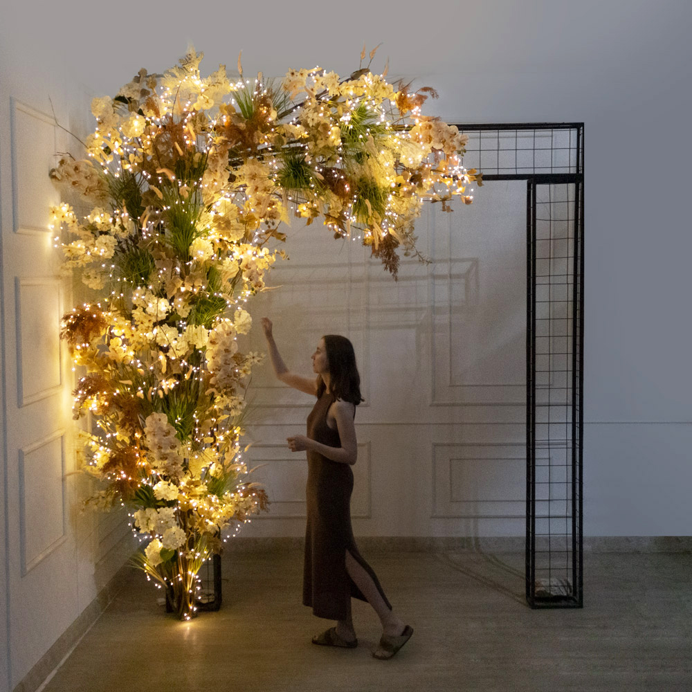 ДЛ176/СВ03(Пр)(Fix)(F) Декор вход. группы h300см на прутьях, пристен. с гирляндой "Роса", бежевый