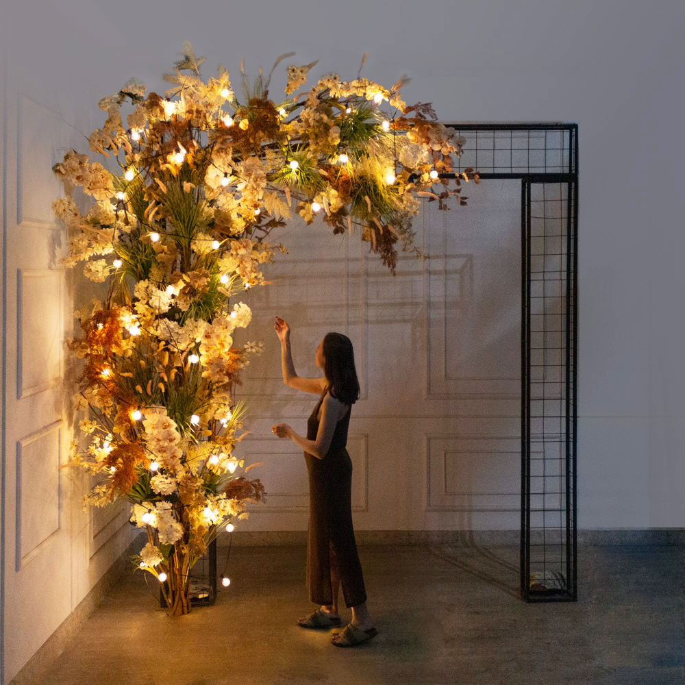 ДЛ176/СВ04(Пр)(Fix)(F) Декор вход. группы h300см н/прутьях,пристен. c ретро-гирляндой,бежевый