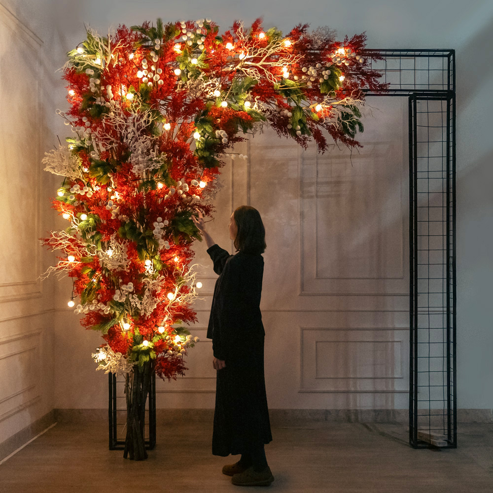ДЛ180/СВ04(Пр)(Fix)(F) Декор вход.группы h300см н/прутьях, прист.с ретро-гирляндой,красно-белый
