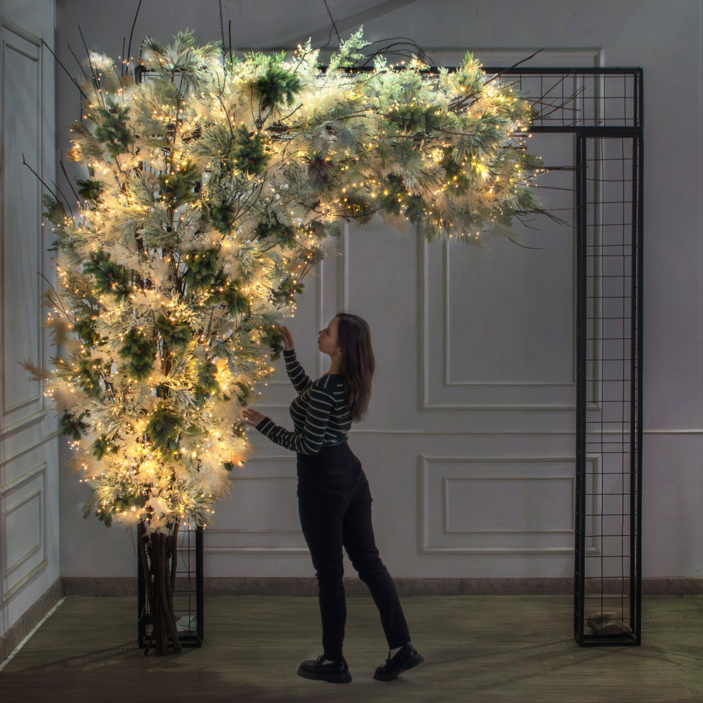 ДЛ181/СВ03т(Пр)(Fix)(F) Декор вход.группы h290см н/прутьях, прист.с гирляндой "Роса",бело-сизый