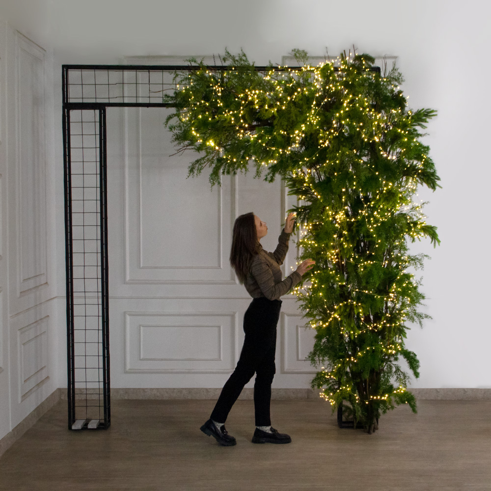 ДЛ182/СВ03т(Пр)(Fix)(F) Декор вход.группы хвойный h290см н/прутьях, прист.с гирляндой "Роса"