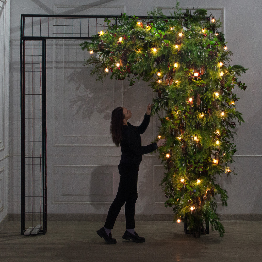 ДЛ183/СВ04(Пр)(Fix)(F) Декор вход.груп. хвойный с ягодами h290см н/прутьях, прист.с ретро-гирляндой